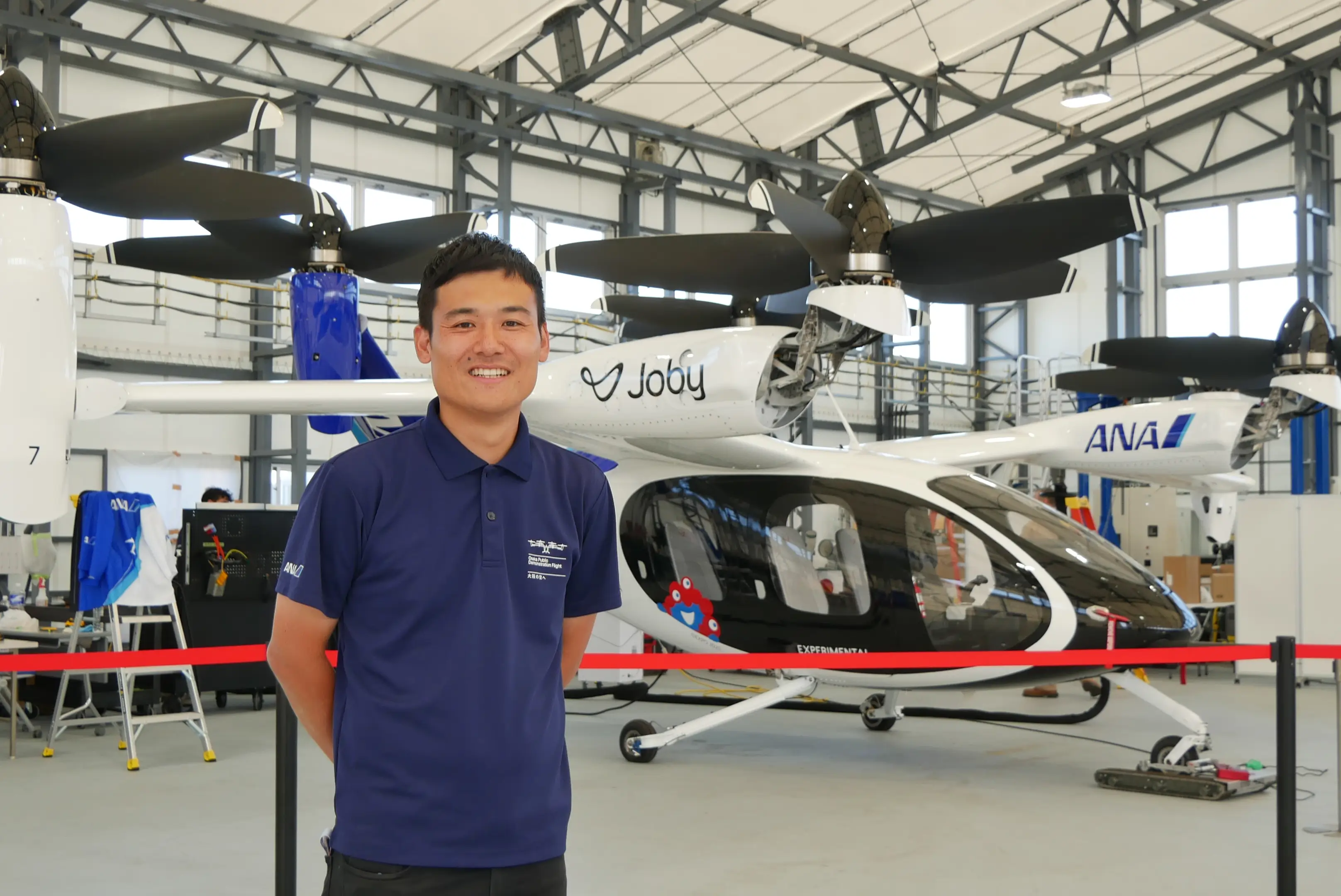 保理江:ANAホールディングス株式会社(以下、ANA)とJoby Aviation Inc.(以下、Joby)は、日本国内での空飛ぶクルマの運航を目指し、2022年2月にeVTOLに関するパートナーシップを発表しました。国交省が「空の移動革命に向けた官民協議会」を主催するなど、官民連携で空飛ぶクルマを導入していこうという大きな流れがある中で、2023年2月には大阪・関西万博における「未来社会ショーケース事業出展」のうち、「スマートモビリティ万博」の空飛ぶクルマ運航事業者のひとつとしてANAとJobyが選定され、今回の万博でのJobyとのデモフライト実施に至りました。